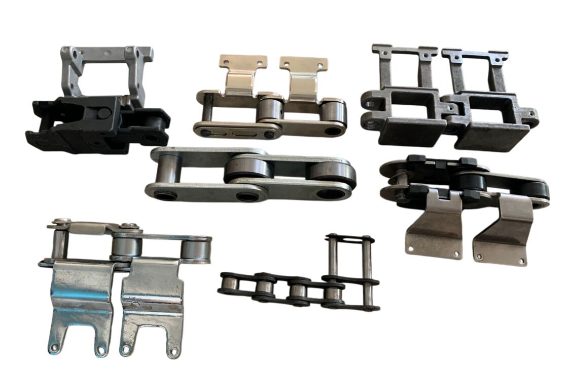 Die Rollenkette gleitet reibungslos auf speziellen Gusseisenbahnen. Die hervorragenden Gleiteigenschaften von Sintermetall reduzieren den Schmierstoffbedarf auch bei hohen Temperatureinstellungen erheblich, was einen sicheren Betrieb und eine lange Lebensdauer gewährleistet. Der Stahlfuß, der die Klemmen hält, ist mit Sintermetall-Einlagen ausgestattet und mit Stahlgliedern verbunden. Auf Wunsch kann die Maschine mit speziellen Polymer-Einlagen für schmierstofffreien Betrieb ausgestattet werden. Optima 2610 ist mit einer vertikalen Rücklauf-Stiftkette ausgestattet.